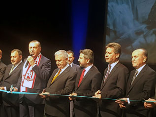 Beştepe Millet Kültür ve Kongre Merkezi'ndeki açılış töreninde konuşan Cumhurbaşkanı Erdoğan, açılışı yapılacak 4 milyar lira yatırım bedelli 151 tesisin hayırlı olmasını temenni ederek, “Türkiye'nin dört bir köşesine yayılan eserlerin yapımında emeği geçenleri kutlarım” dedi.Cumhurbaşkanı Erdoğan, açılışı yapılan 151 eserle 663 bin dekar araziyi zirai sulamaya açtıklarını, yerleşim merkezlerine yılda 100 milyon metreküp içme suyu temin ettiklerini, bir il 29 ilçe, 186 yerleşim yeri ve 376 bin dekar arazinin sel ve taşkından korunmasını sağladıklarını aktardı.Ağaçlandırma, ormancılık ve milli park projeleriyle daha yeşil bir Türkiye hedefine doğru adım adım ilerlediklerinin altını çizen Erdoğan, barajları, göletleri, sulama tesisleri, içme suyu tesisleri, ağaçlandırma çalışmaları başta olmak üzere geniş bir alana yayılan 151 eseri teker teker saymanın mümkün olmadığını ifade etti.Türkiye'ye toplu açılış geleneğini getirmek suretiyle siyasi bir kadro oluşturan yapılanma olduklarını söyleyen Erdoğan, "Bugün de tek bir törenle 4 milyar liralık bir yatırımı bir anda hizmete açıyoruz. Milletimiz bu hizmetlerin hepsini görüyor, kimlerin yaptığını, nasıl yaptığını da gayet iyi görüyor" dedi.Konuşmaların ardından protokol sahnede 151 tesisin açılış kurdelesini kesti.