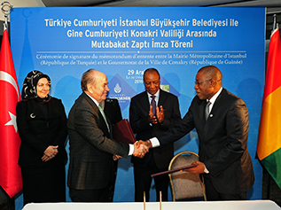 Cumhurbaşkanı Recep Tayyip Erdoğan’ın davetlisi olarak Türkiye’ye gelen Gine Cumhurbaşkanı Alpha Condé ve beraberindeki heyet, İstanbul Büyükşehir Belediye Başkanı Kadir Topbaş ile bir araya geldi. Görüşmede İstanbul Büyükşehir Belediyesi (İBB) ile Konakri Valiliği arasında işbirliğini öngören mutabakat zaptı imzalandı.