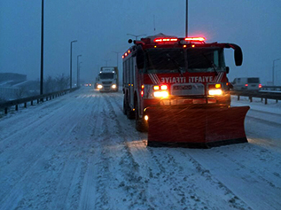 İstanbul Büyükşehir Belediyesi, kış şartlarında şehir hayatının normal seyrinde devam etmesi için AKOM koordinasyonunda karla ve kışla mücadele çalışmalarını sürdürüyor. TEM Ahmediye Mevkiinde iki Tır'ın devrilmesi nedeniyle bir süre trafik bir süre aksadı. Kazaya İtfaiye ve Yol Bakım kar kürüme ekipleri müdahale etti.