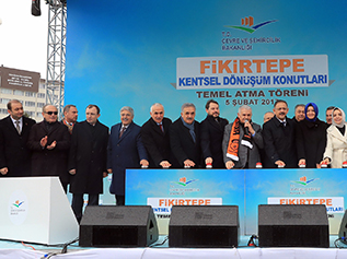 Törende konuşmaların ardından Başbakan Binali Yıldırım, Çevre ve Şehircilik Bakanı Mehmet Özhaseki, İstanbul Büyükşehir Belediye Başkanı Kadir Topbaş ile diğer katılımcılar butona basarak Fikirtepe Konutları’nın temel atma törenini gerçekleştirdi.