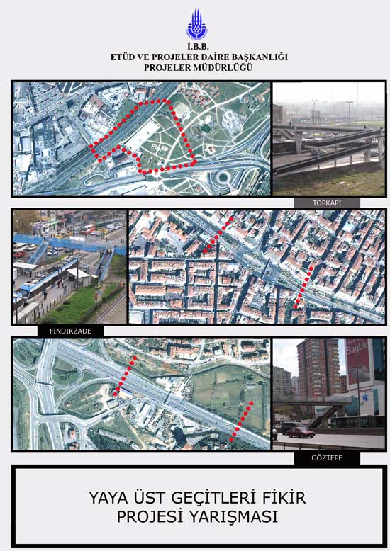 Yarışmanın konusu; İstanbul İlinin Topkapı, Fındıkzade ve Göztepe semtlerinde ekli haritalarda belirtilen yerlerde yaya üst geçitleri fikir projelerinin elde edilmesidir.