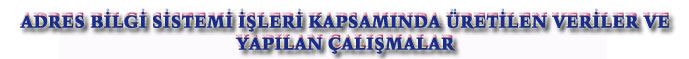 Adres Bilgi Sistemi çalışmalarıyla; yol, bina ve bina dış kapı numaraları bilgileri toplanarak bilgisayar ortamına aktarılmakta, cadde ve sokaklar Adres ve Numaralamaya İlişkin Yönetmeliğe uygun hale getirilmekte, binalar numaralandırılarak cadde ve sokaklarla ilişkilendirilmekte ve yeni adresler Ulusal Adres Veri Tabanı’na aktarılmaktadır.