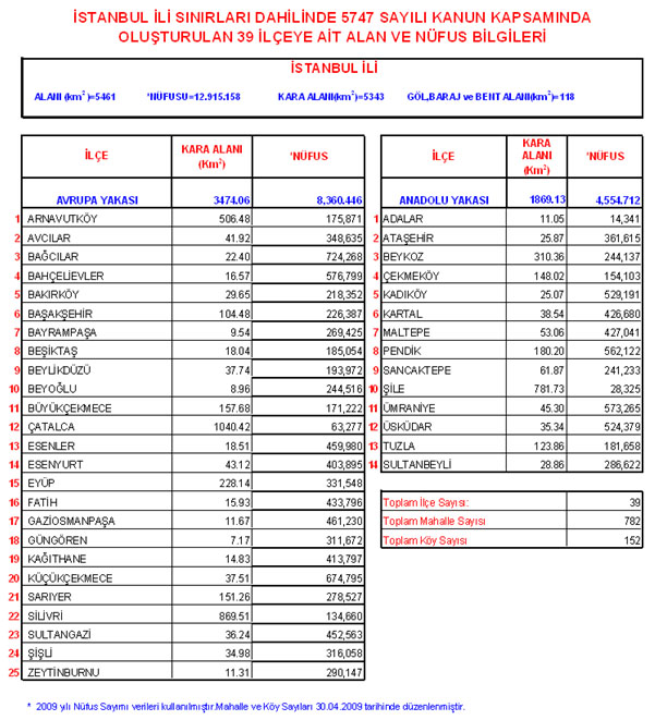5747 Sayılı Kanunun yürürlüğe girmesiyle ilimizdeki ilçe sayısı yeni ilçelerin kurulması ile 39’a yükselmiş olup, mevcut ilçe sınırları yeniden düzenlenmiştir.